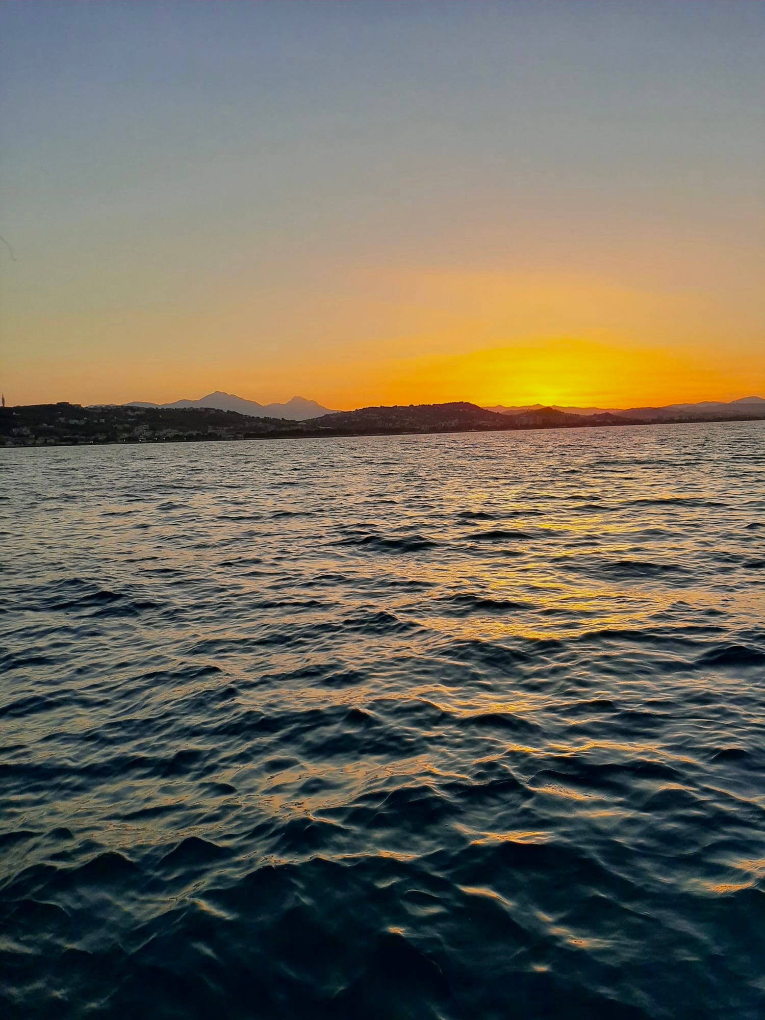 A bordo del nostro catamarano potrai ammirare le splendide luci del tramonto in mare aperto, degustando vino bianco e mangiando un'ottima frittura di pesce, per poi rientrare in porto con le luci della città che si accendono, illuminando la costa!